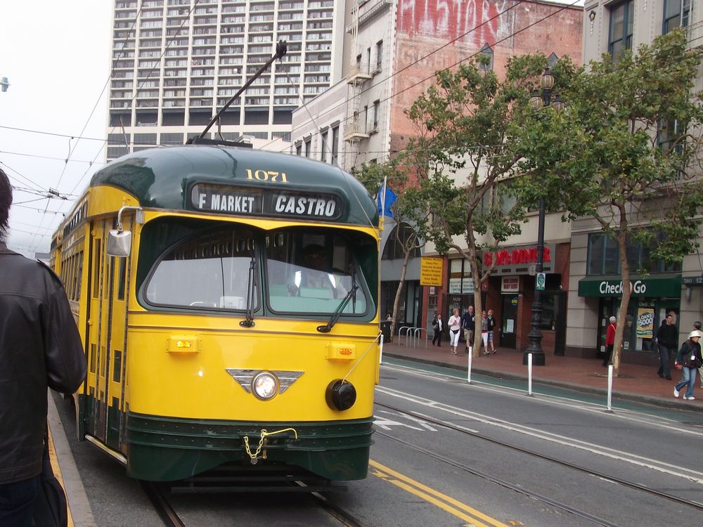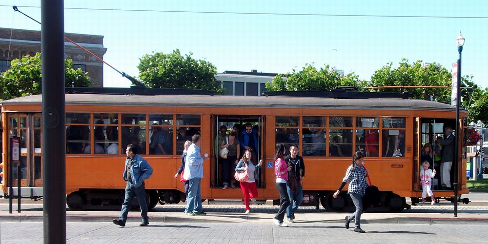 路面電車は、F-Market & Wharvesラインを利用して、(A) Market St & 8th St停留所から、(B) The Embarcadero & Stockton St停留所へと向かいました。